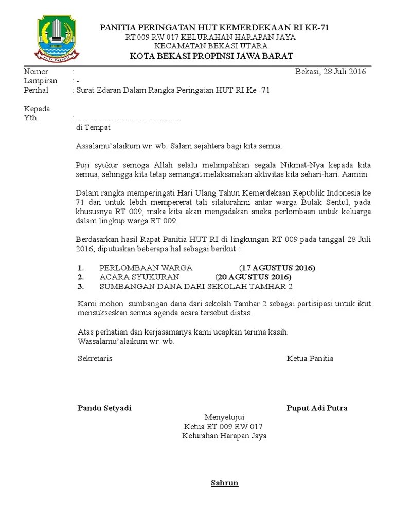 Greater contoh undangan 17 agustus untuk warga document snap shots. Surat edaran dan surat pemberitahuan warga surat proposal sekolah menengah. Demikian undangan ini kami buat, atas perhatian dan kehadirannya kami. Contoh surat undangan rapat karang taruna desa acara 17 agustus surat. Contoh surat undangan rapat karang taruna desa acara 17 agustus surat.